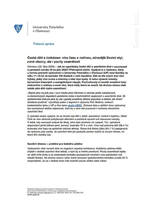 Každému pátému dítěti (20,9 %) chyběl v období uzavření škol někdo, s kým by si mohl promluvit. Pocity osamělosti trpěly ve větší míře dívky (18,5 % vs 9,7 %