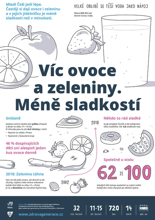 Stravovací návyky české mládeže se postupně zlepšují. Svým dětem totiž rodiče dopřávají více ovoce a zeleniny. Dokonce znatelně víc, než je v Evropě a ve světě běžné. Snídaní začíná svůj všední den polovina chlapců a dívek ve věku 11–15 let. Dospívající také ve srovnání s minulými lety konzumují méně sladkostí. Třetina z nich pamlsky nejí vůbec, nebo se k nim dostanou jen výjimečně.